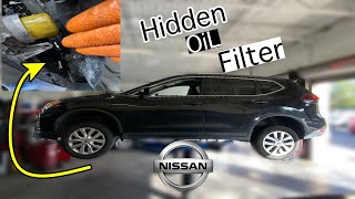 Nissan Rogue Engine Oil Change Filter Replacement Guide Qr25de 2 5l I4 Motor 2014 To 2018 Model Years Picture Illustrated Automotive Maintenance Diy Instructions
